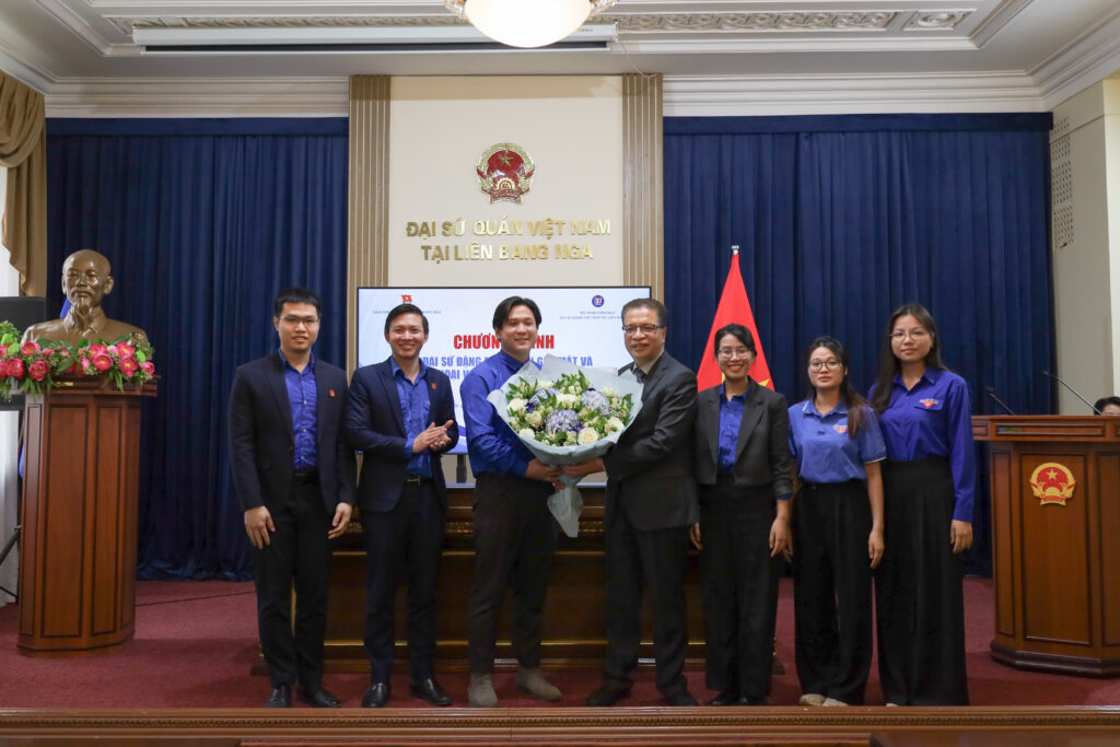 Hòa chung không khí sôi nổi của Tháng Thanh niên năm 2025 với chủ đề “Tuổi trẻ tự hào, vững tin theo Đảng”, chào mừng kỷ niệm 94 năm ngày thành lập Đoàn Thanh niên Cộng sản Hồ Chí Minh, Đảng ủy, Đại sứ quán Việt Nam tại Liên bang Nga đã gửi tặng bó hoa tươi thắm tới Ban Cán sự Đoàn – Hội Sinh viên Việt Nam tại Nga. Đây không chỉ là sự ghi nhận những đóng góp tích cực của Ban Cán sự Đoàn – Hội Sinh viên Việt Nam tại Nga trong việc phát triển phong trào thanh niên, sinh viên tại Nga, mà còn thể hiện sự quan tâm sâu sắc, trách nhiệm của cơ quan đại diện ngoại giao đối với thế hệ trẻ.