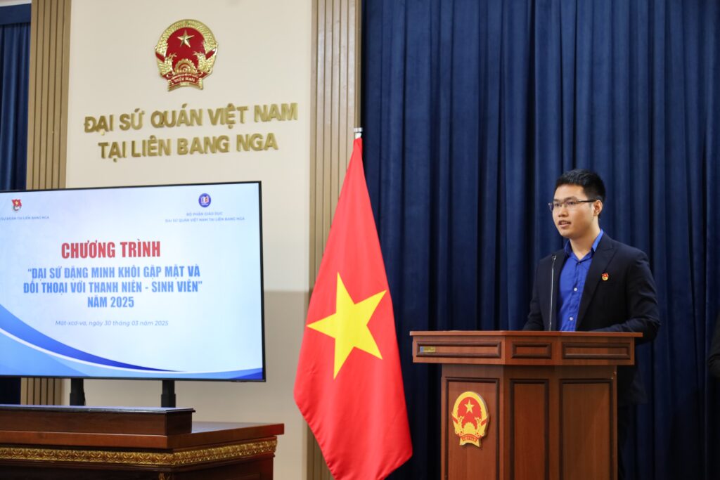 Nhìn lại chặng đường 75 năm kể từ khi Việt Nam cử đoàn Du học sinh đầu tiên sang Nga, Đại sứ bày tỏ niềm tự hào về truyền thống của sinh viên mình ở nước sở tại, nhấn mạnh rằng thế hệ trẻ hôm nay mang trên vai trọng trách lớn: học tập, rèn luyện và cống hiến để làm rạng danh Tổ Quốc, và khẳng định việc học tập ở Nga là cơ hội để phát triển tư duy sáng tạo, tính nhạy bén và khả năng ứng dụng tri thức vào thực tiễn.