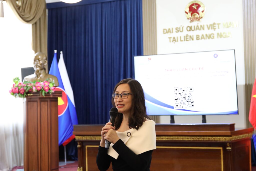 Tiếp nối chương trình, Hội nghị bàn tròn tham luận vấn đề “Kinh nghiệm học tập và nghiên cứu” đã diễn ra với sự tham gia của đại diện Bộ phận Giáo dục Đại sứ quán, các chuyên gia và đông đảo thanh niên – sinh viên. Đây là diễn đàn mở, nơi các đại biểu và sinh viên cùng trao đổi về phương pháp học tập hiệu quả, cách tiếp cận nghiên cứu khoa học, đồng thời thảo luận về những cơ hội và thách thức trong môi trường học thuật tại Nga.