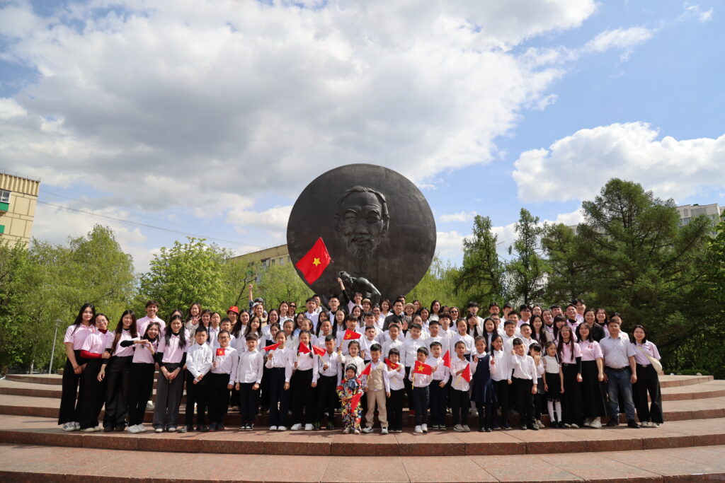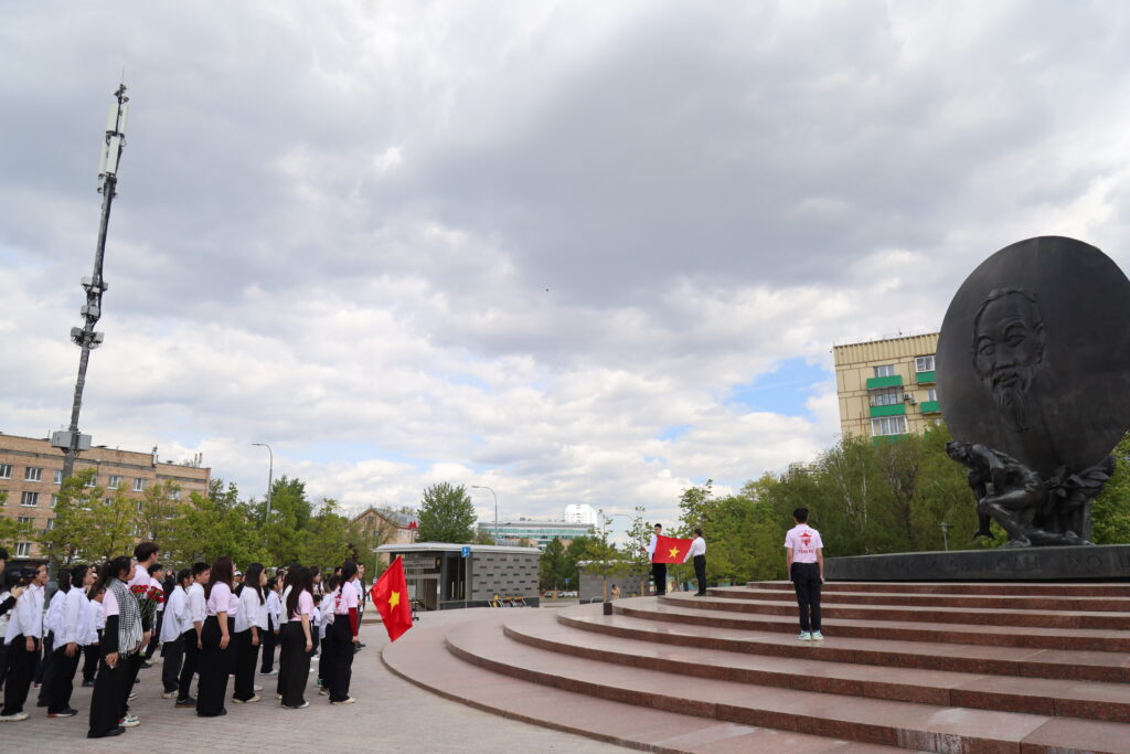Dưới chân Tượng đài Chủ tịch Hồ Chí Minh – công trình biểu tượng cho tình hữu nghị bền chặt Việt – Nga và là nơi thường xuyên diễn ra các hoạt động tưởng niệm của cộng đồng người Việt – các em học sinh trong trang phục chỉnh tề đã thực hiện nghi lễ dâng hoa. Những bó hoa tươi thắm được thành kính dâng lên, tượng trưng cho lòng biết ơn vô hạn đối với Chủ tịch Hồ Chí Minh, vị lãnh tụ kính yêu, người luôn dành tình yêu thương đặc biệt cho các cháu thiếu niên, nhi đồng.