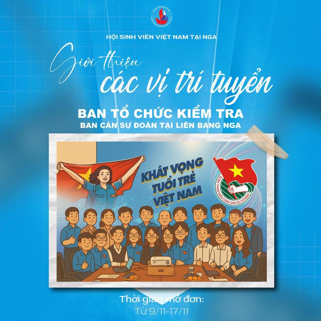 Hội Sinh viên Việt Nam tại Nga vừa chính thức công bố Kế hoạch tuyển Cộng tác viên (CTV) Đoàn – Hội năm 2025, nhằm bổ sung lực lượng trẻ, năng động cho các mảng hoạt động ngày càng mở rộng trong cộng đồng sinh viên Việt Nam trên toàn Liên bang Nga.