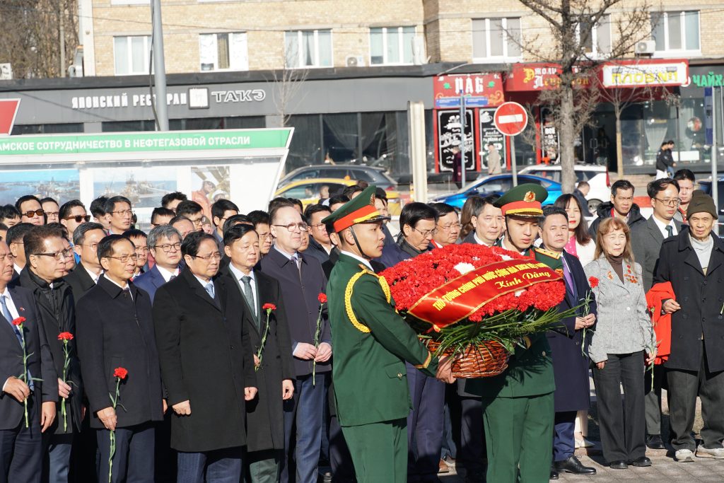 Sáng 23/3, trong khuôn khổ chuyến thăm, Thủ tướng cùng Đoàn đại biểu cấp cao đã dâng hoa tại tượng đài Chủ tịch Hồ Chí Minh tại Moskva. Trong không khí trang nghiêm, các đại biểu bày tỏ lòng biết ơn sâu sắc đối với vị lãnh tụ vĩ đại của dân tộc Việt Nam – người đặt nền móng cho quan hệ hữu nghị truyền thống giữa Việt Nam và Liên bang Nga. Hoạt động dâng hoa không chỉ thể hiện đạo lý “Uống nước nhớ nguồn” mà còn góp phần khơi dậy niềm tự hào, ý thức trách nhiệm của cộng đồng người Việt Nam ở nước ngoài, đặc biệt là thế hệ trẻ.