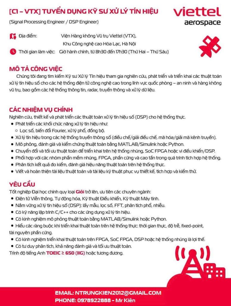 TUYỂN DỤNG KỸ SƯ DSP/ PHẦN MỀM NHÚNG – CƠ HỘI LÀM VIỆC CÙNG VIETTEL DÀNH CHO DU HỌC SINH Ở NGA